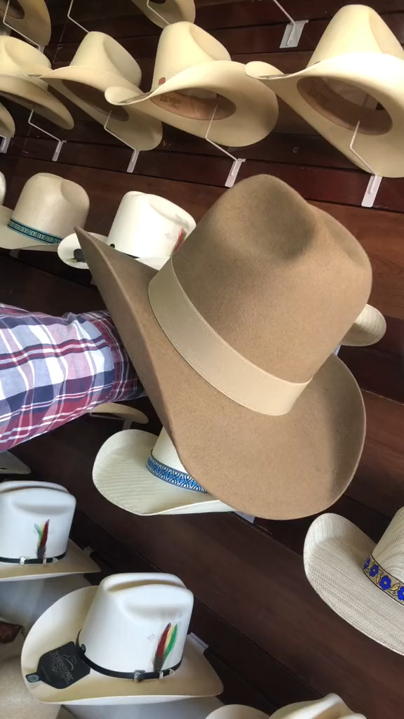 Khaki feather-trimmed cowboy hat