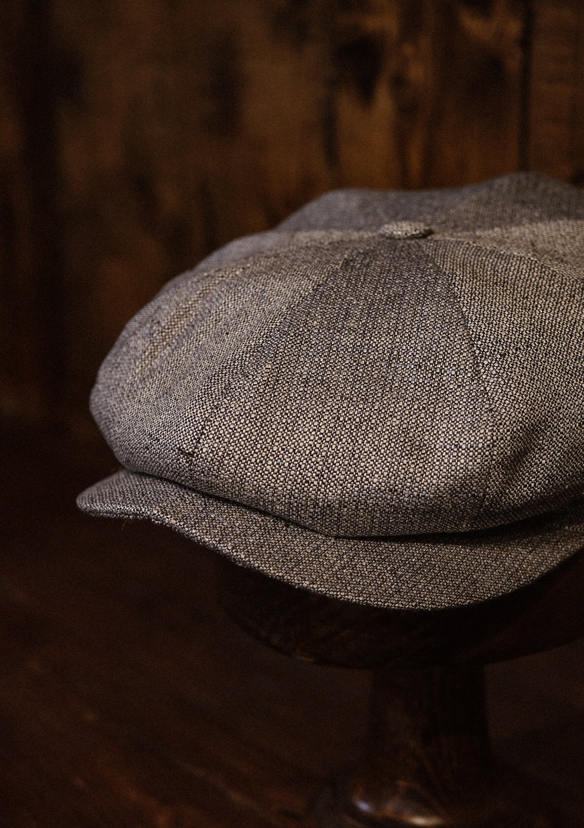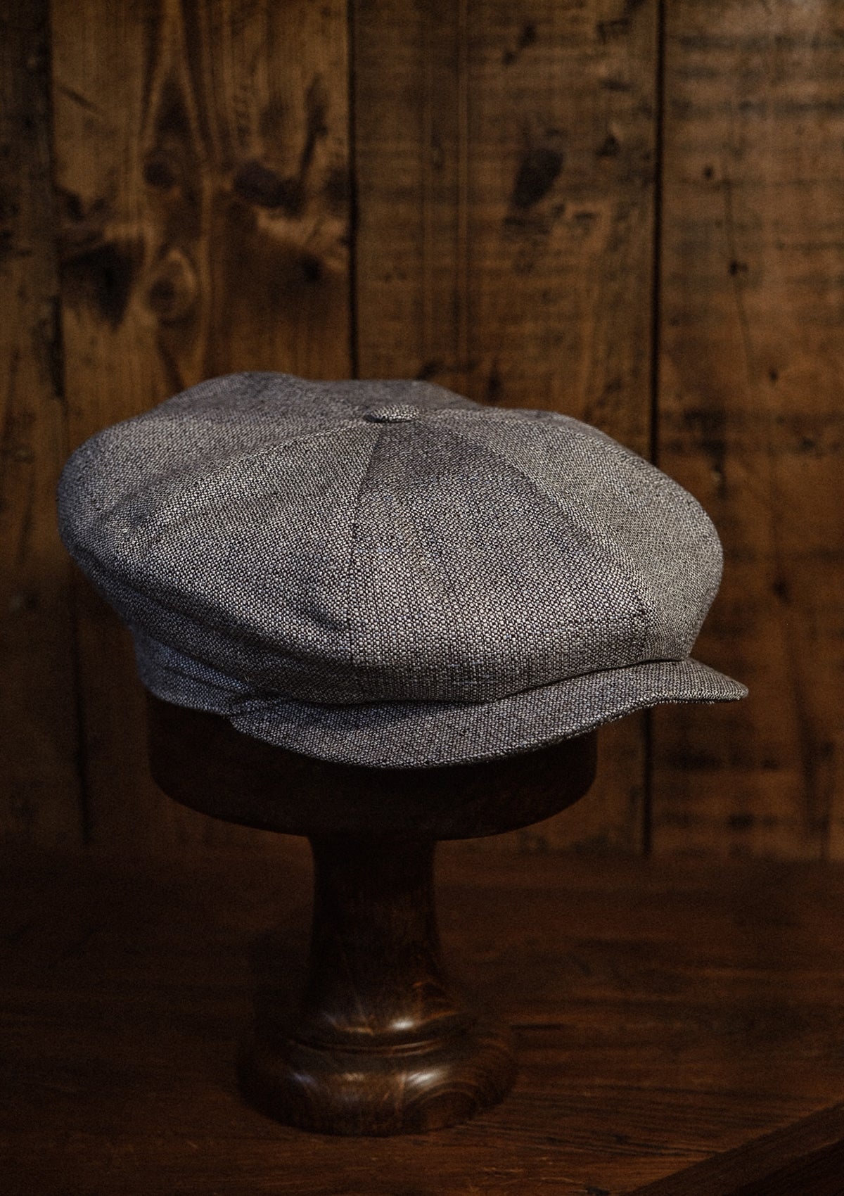 The Regent Bakerboy is a Classic, narrow width 8-piece Baker Boy cap, made from 70% Linen, 20% Cotton and 10% Silk