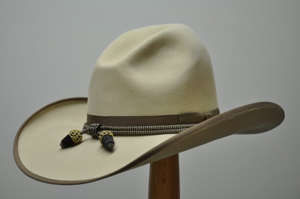 Soft as the prairie wind that carries the songs of the frontier, this off-white Tom Horn Hat moves with a gentle, rhythmic grace. Its braided band and tasseled pendants sway like flowing gold, catching the light as you ride across the open range. A whimsical yet sturdy choice for festivals or trail rides, it lets the spirit of the West sing through every stitch.
